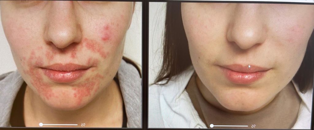 La dermatite periorale è una malattia infiammatoria localizzata di causa incerta che si manifesta con un’eruzione eritematosa e pustolosa che coinvolge le  pieghe naso labiali e il mento risparmia il margine labiale e l’area immediatamente prospiciente le labbra.
